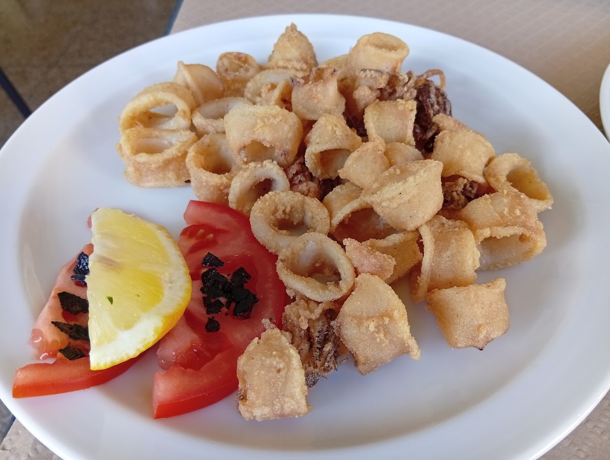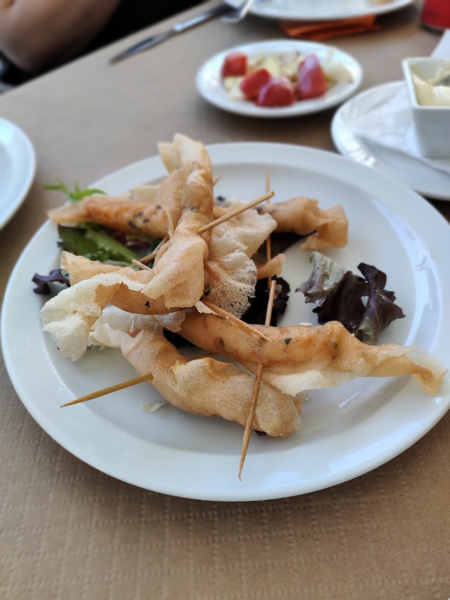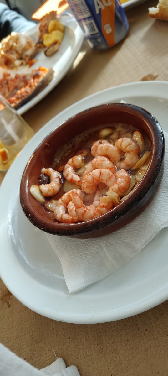 Nice lunch and very busy. Lovely sardines and melon with ham €7.50 each. Good sized portions. Bread with aioli €2 and worth it. Service efficient but not particularly friendly. Good value meal. 2 glasses of wine €2 each.